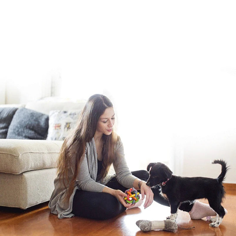 Colorful bell woven ball Rainbow toy ball Burst dog bite resistant toy rubber pet supplies